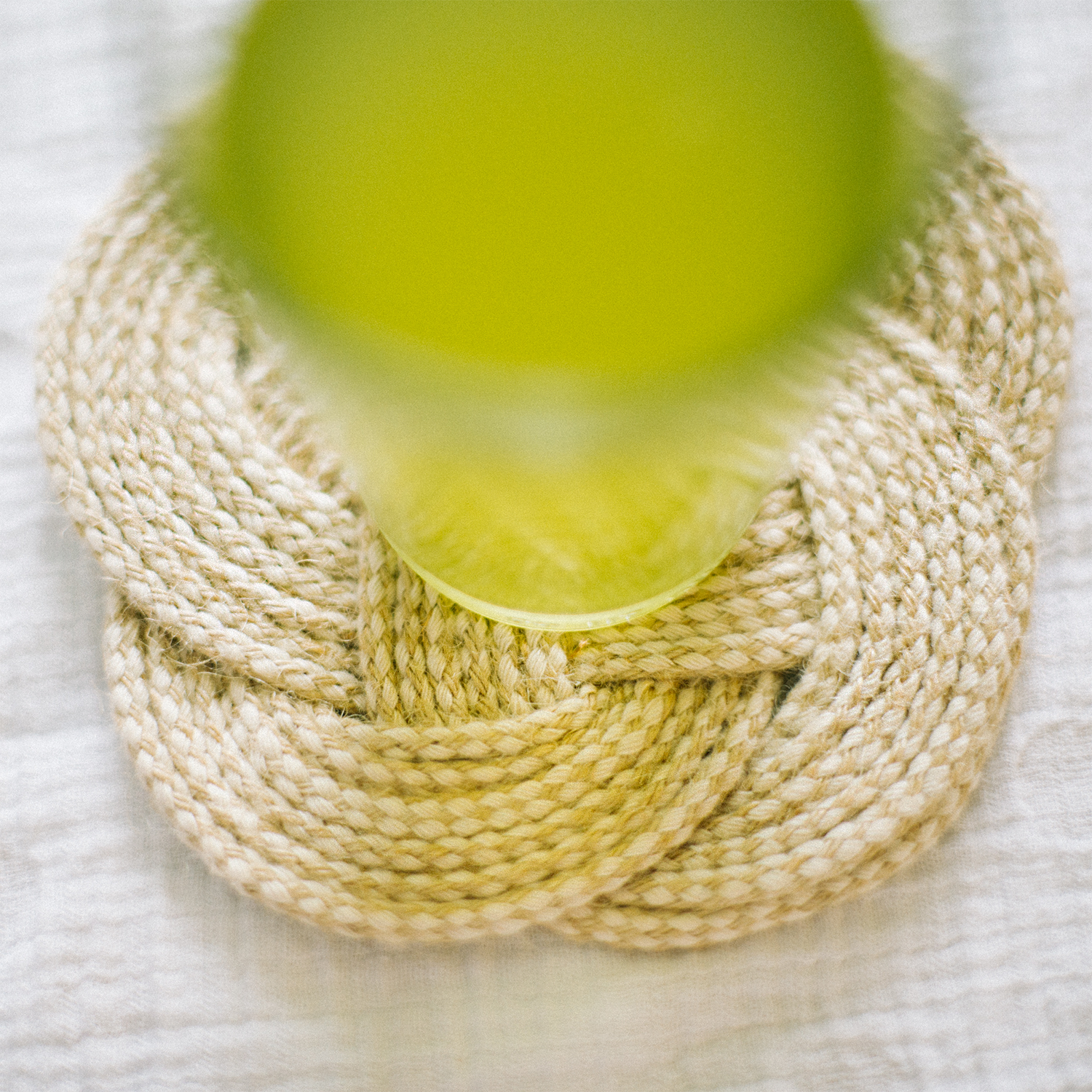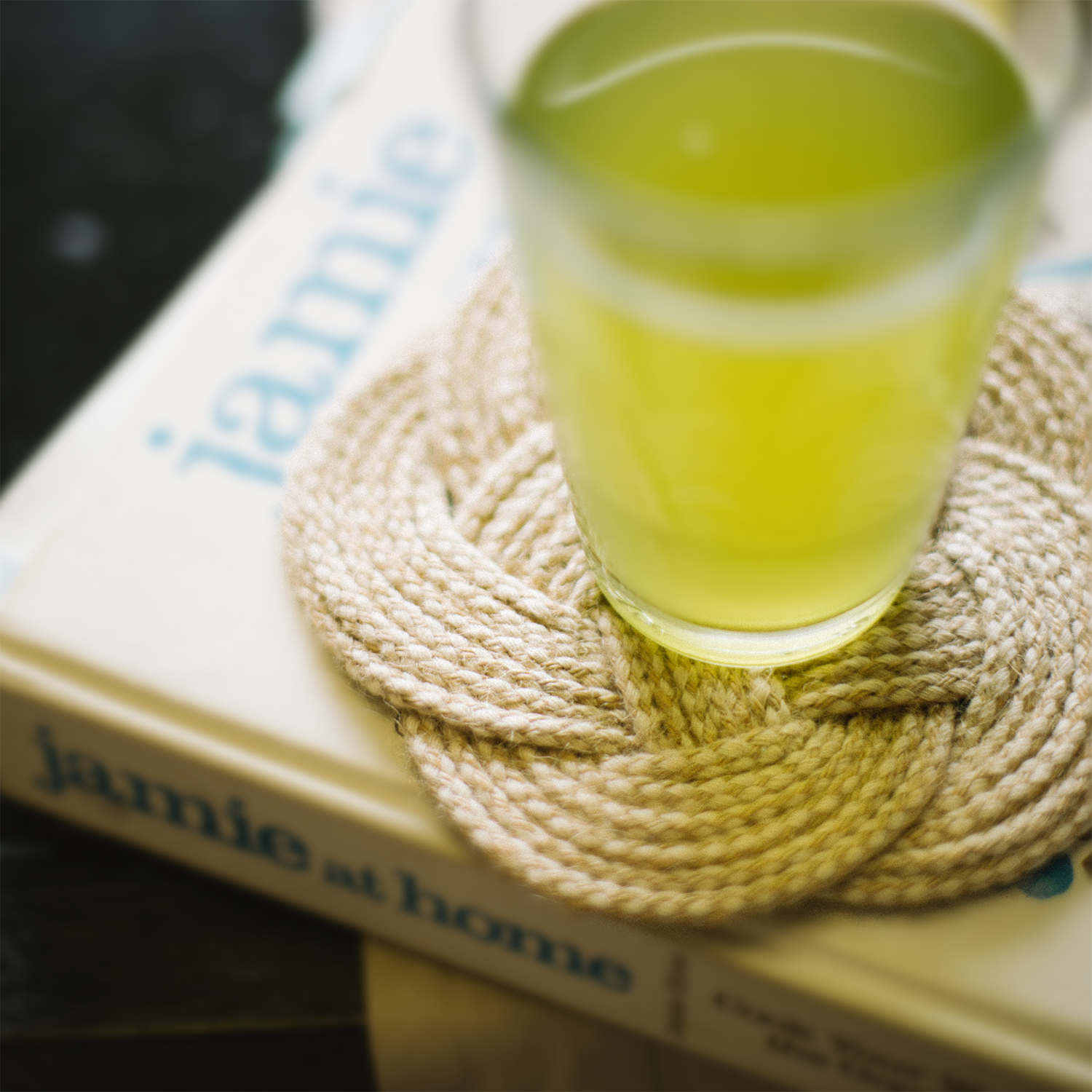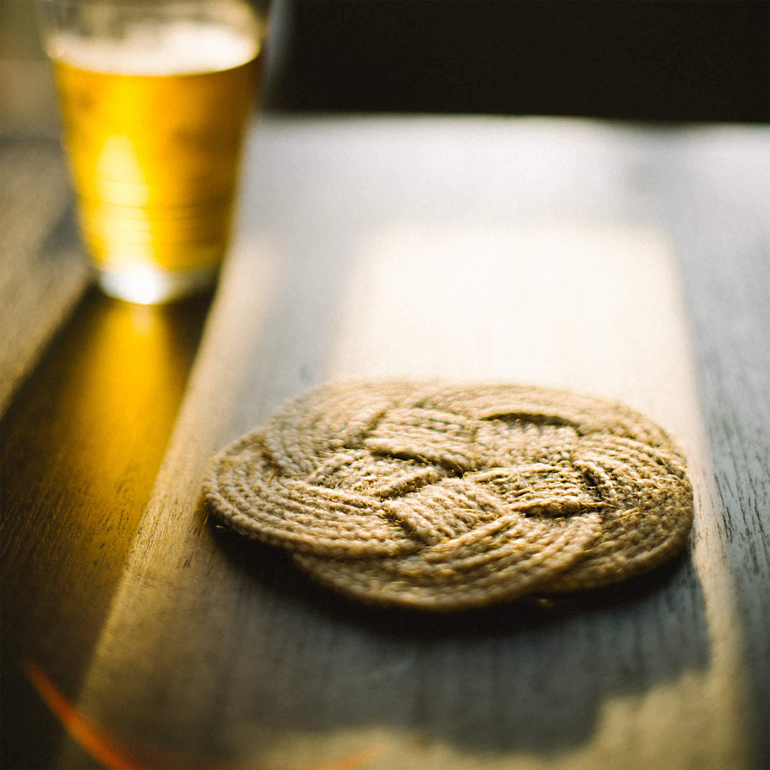 These beautiful coasters are handmade from a single strand of cotton/jute blended rope. Measuring approximately 6" in diameter, they fit perfectly under drinking glasses, coffee mugs, wine glasses or any normal size cup.
